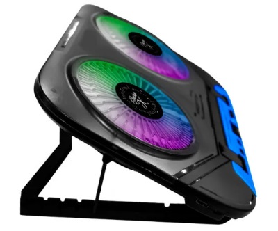 -Doble ventilador. -2 conexiones USB. -Control de velocidad. -Rejilla de metal. -Reclinable. -Multiposiciones. -Ideal para equipos entre 10 Plg y 17 Plg