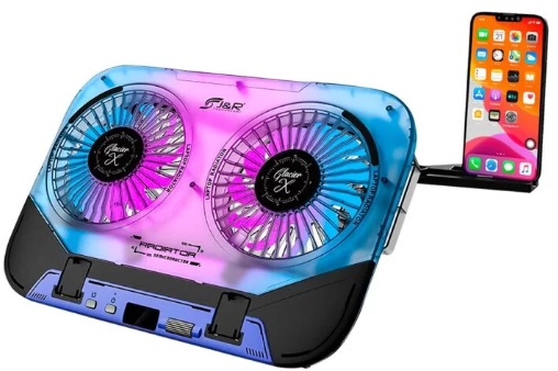 2 Frost-X Units 2 ventiladores de alto rendimiento Pantalla digital integrada Velocidad ajustable Luces RGB dinámicas Compatible con laptops de hasta 17”