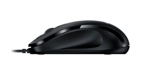 Mouse óptico USB con cable, de dos botones y rueda de desplazamiento, de color negro, diseño ambidiestro y conexión plug-and-play