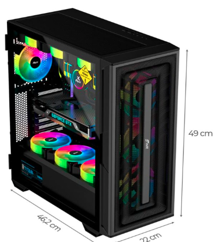Chasis Ultimate Gamer PRO edición Pretorian, compatible con placa M-ATX, material de alta calidad, lateral en vidrio templado para una mejor disipación de calor, lamina black coating de alto calibre, incluye 6 cooler con tecnología ARGB instalados, controladora y control remoto para ajustar la velocidad, intensidad, color o efecto de iluminación de los cooler (+ 100 modos de luz) puertos USB 2.0, tarjeta de audio integrada para disfrutar de sonido HD.