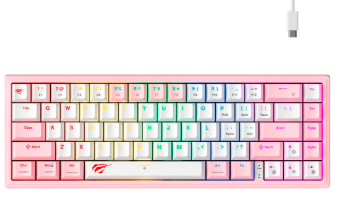 Idioma: Inglés US. Layout: QWERTY. Color de la retroiluminación: RGB. Color del teclado: Rosa. Switch mecánico tipo Red para respuesta rápida y precisa. Dimensiones compactas: 32.1 cm de ancho y 11.3 cm de altura.